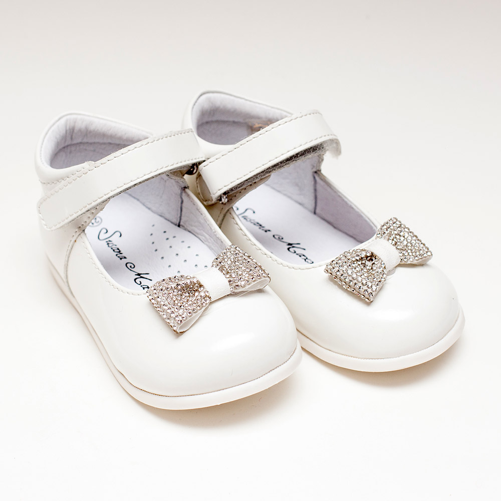 Δερμάτινες μπαλαρίνες λουστρίν με φιόγκο και μπαρέτα