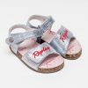 Κοριτσίστικο πέδιλο ασημί με πάτο από φελλό