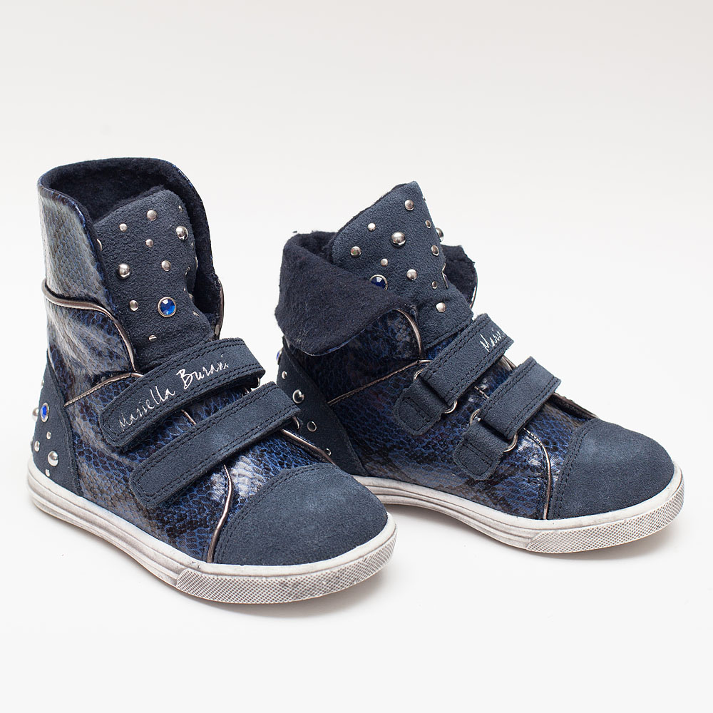 Μπλε δερμάτινα κοριτσίστικα μποτάκια sneakers