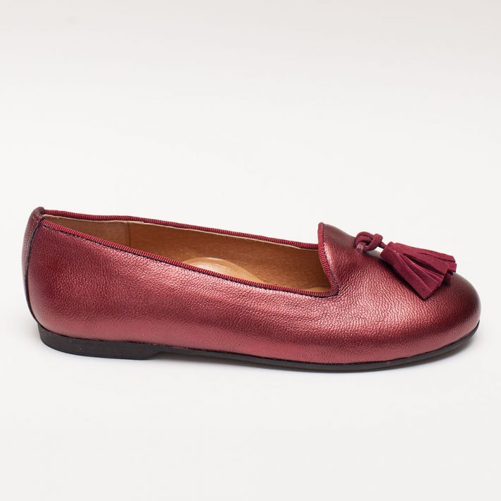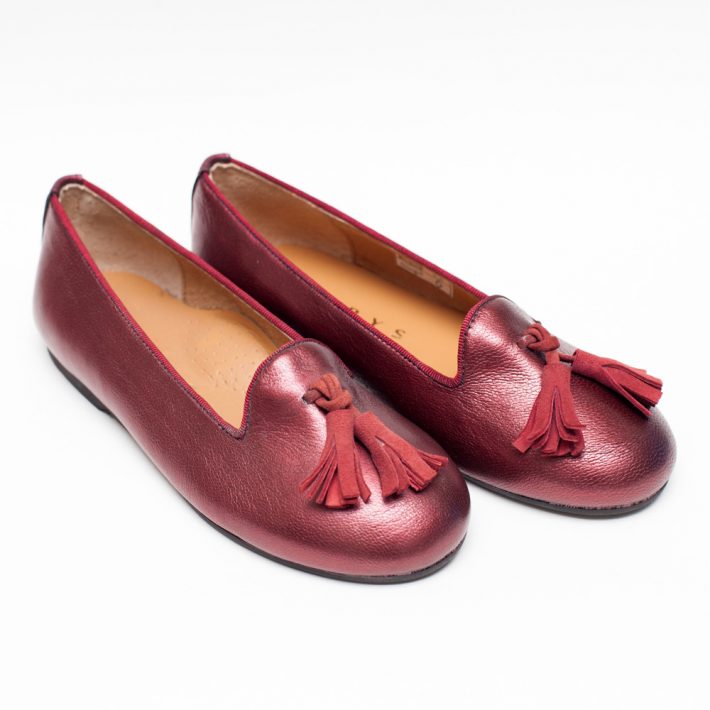 Δερμάτινη μπαλαρίνα σε μπορντώ χρώμα με φουντίτσες